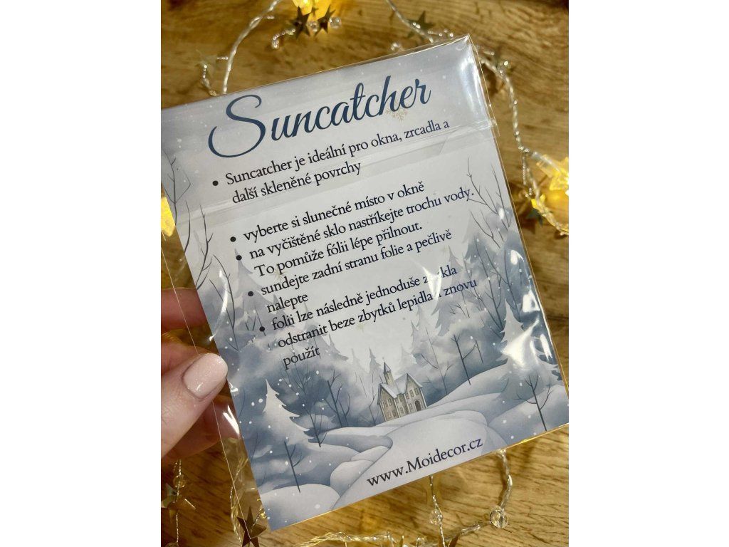Suncatcher lze následně jednoduše ze skla odstranit beze zbytků lepidla a znovu použít.